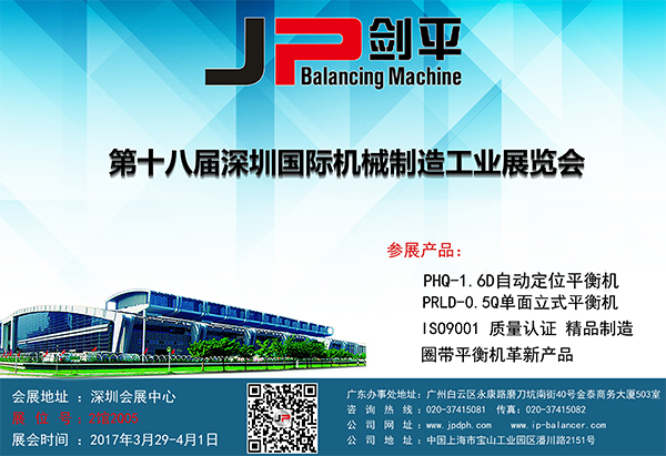 第18屆深圳國(guó)際機(jī)械工業(yè)展覽會(huì)(簡(jiǎn)稱SIMM)將于2017年3月29日在深圳會(huì)展中心隆重開幕,屆時(shí),動(dòng)平衡機(jī)品牌上海劍平也將亮相SIMM。